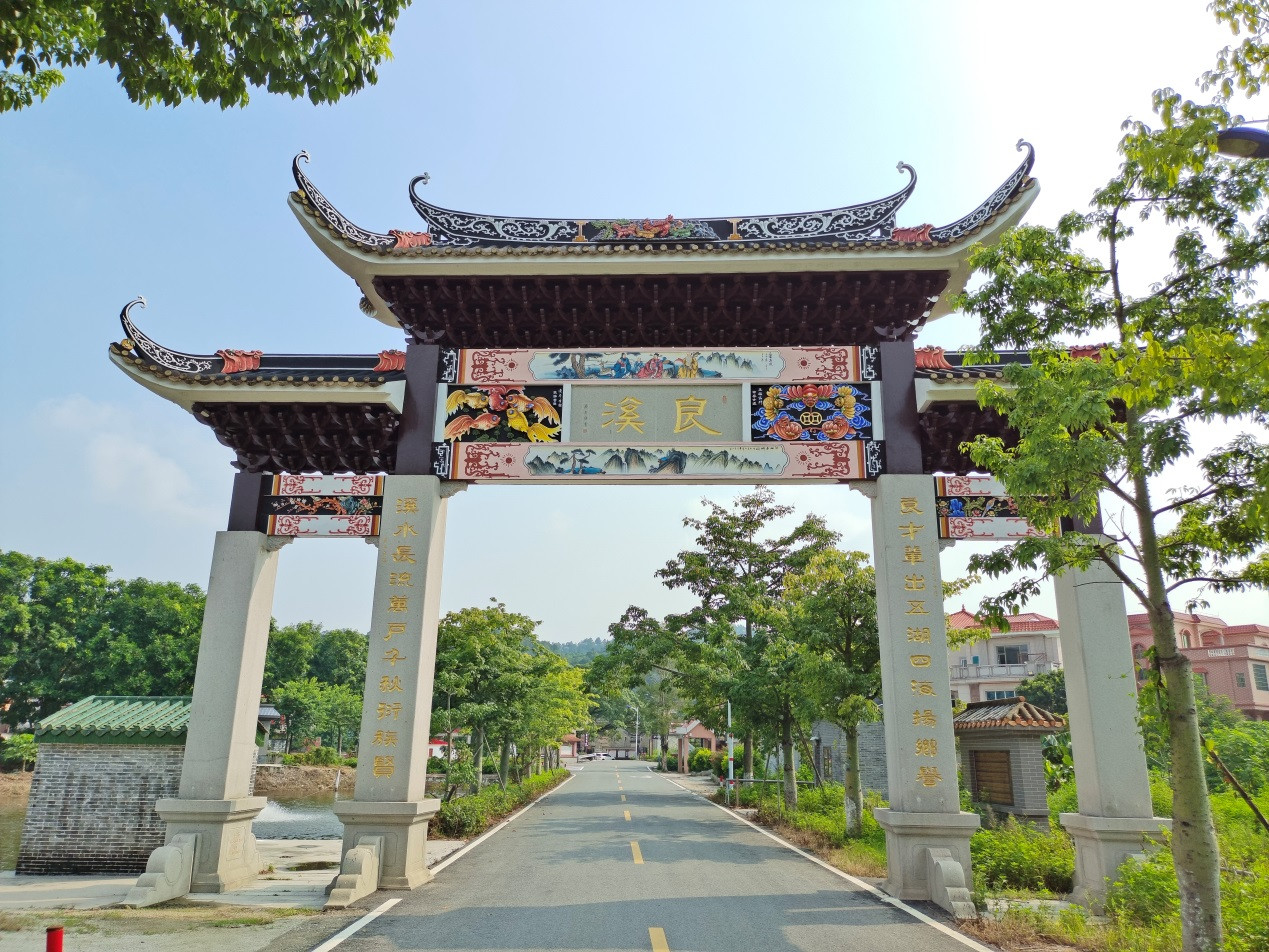 良溪旧称“蓢底”,因其“原为湿地,沼泽蓢草,丰沛葳蕤”而名,明洪武年初取其谐音改称“良溪”,意为“良才大用,溪水长流”。村落背山而筑,面水而居,构成弓状,山水与古民居环境的组合,体现了旧时风水理论指导村落建设布局的综合价值。村内完整保存着三百余座明清古建筑,建筑风格疏朗大气、清新明快,具有典型的岭南建筑特色,是历史风貌保存较为完整的岭南古村落,先后被评为“广东省古村落”“广东省历史文化名村”“中国传统村落”。
