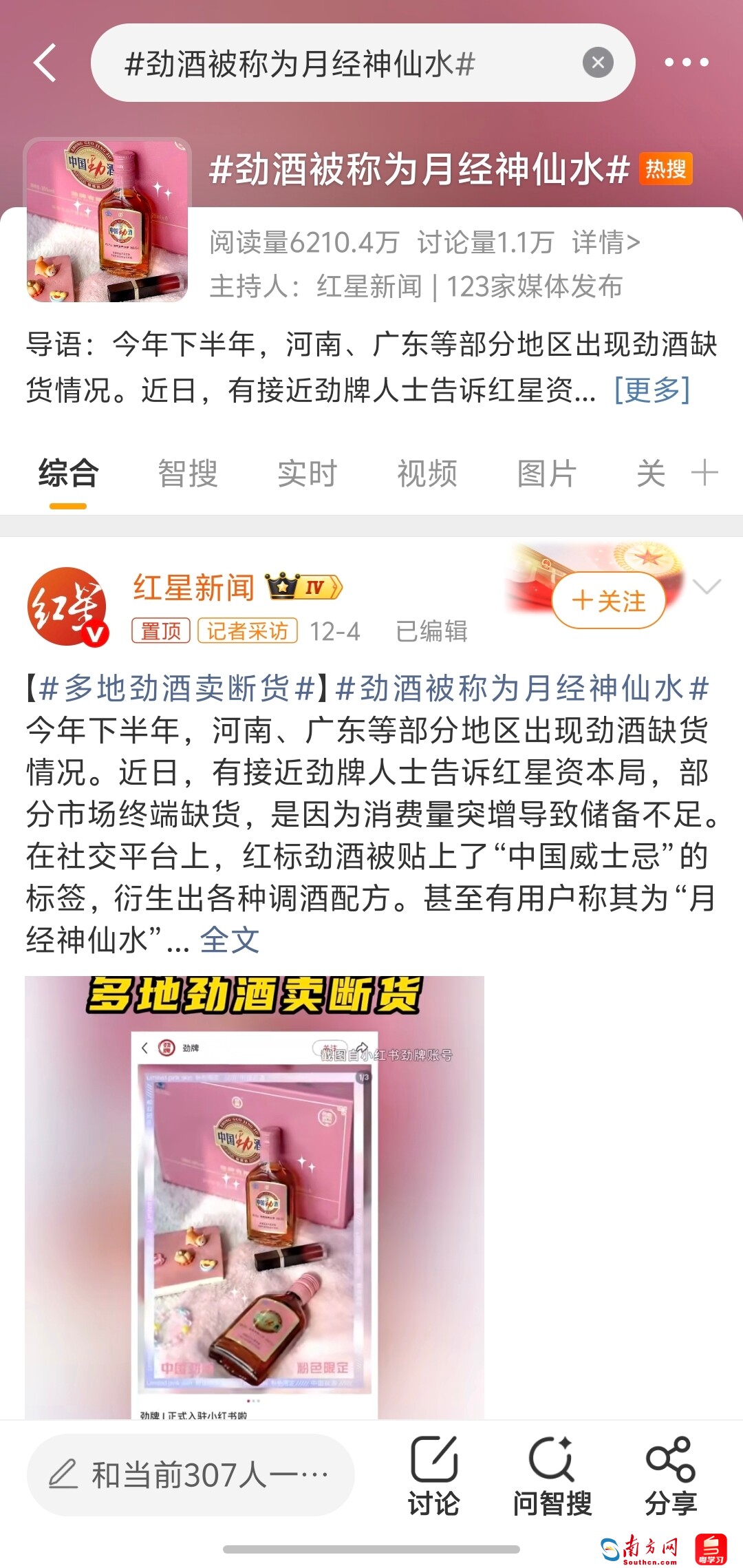 近日,#劲酒被称为月经神仙水#的话题登上热搜,引发网友热议。社交平台上,不少网友分享劲酒缓解痛经、促进月经来潮的经验,并推出劲酒特调做法。社交媒体的热议带火了劲酒业绩增长。据媒体报道,河南、广东等地的门店表示劲酒出现缺货。