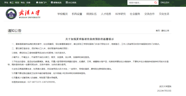 武汉大学医院发布关于加强夏季肠道传染病预防的温馨提示