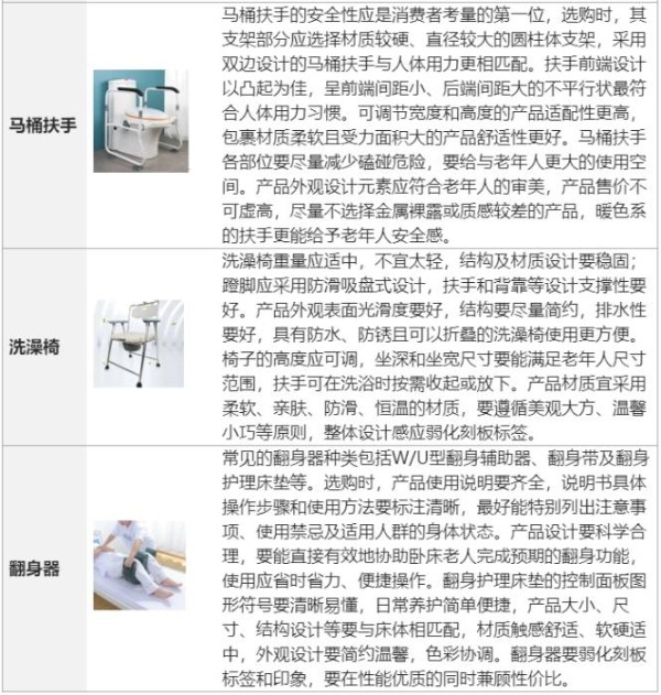 实际测评结论以及老年消费者的体验感受也表明,在选择和生产养老辅助器具及适老化产品时应注意以下问题: