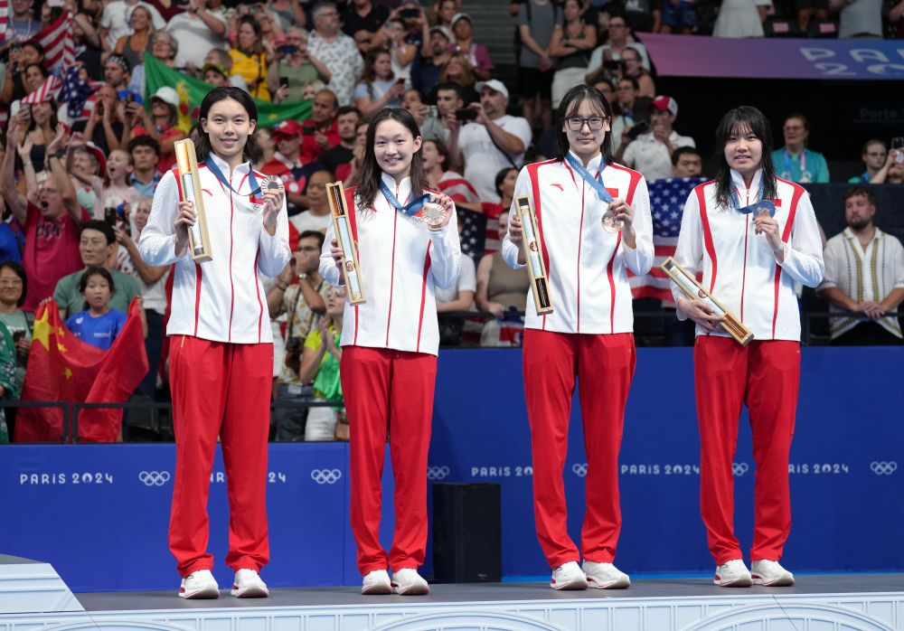 巴黎奥运会游泳赛场1日进行4个项目决赛,女子4X200米自由泳接力卫冕冠军中国队摘得铜牌;张雨霏克服身体不适,夺得女子200米蝶泳铜牌,这也是她个人第七枚奥运奖牌。