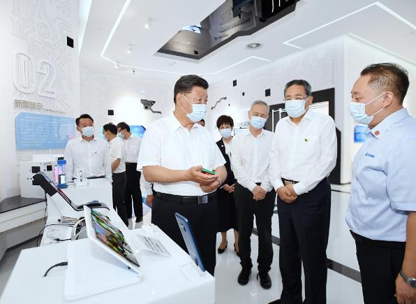 8月18日至21日,中共中央总书记、国家主席、中央军委主席习近平在安徽省考察。这是19日上午,习近平在马鞍山市中国宝武马钢集团优质合金棒材车间考察,了解企业复工复产和经营情况。新华社记者 王晔 摄