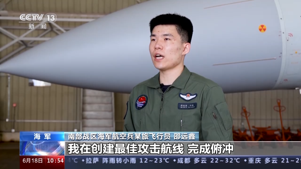 南部战区海军航空兵某旅飞行员 邵远鑫:这是我改装本机型以来首次参加海地靶实弹射击训练,我在创建最佳攻击航线,完成俯冲、瞄准、攻击、脱离等动作时还是比较困难的。通过这次训练,我不但能够更加熟练地操纵多种武器设备,而且还提升了个人的技战术水平。