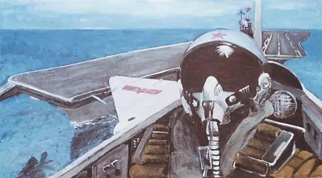 一名飞行员驾驶舰载机从航母上起飞