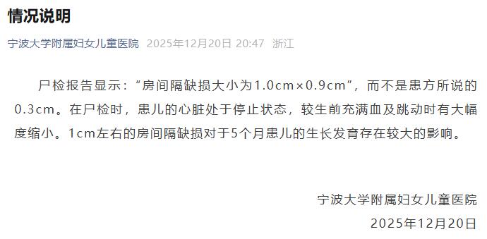 12月20日20时47分,“宁波大学附属妇女儿童医院”微信公众号发布情况声明: