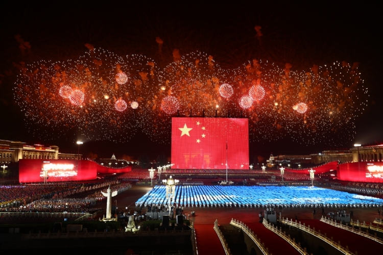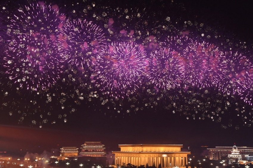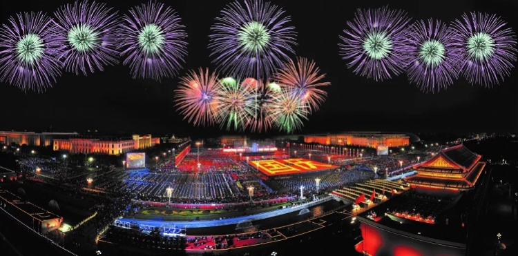 10月1日晚,庆祝新中国成立70周年联欢活动在天安门广场举行。其中,多种形式的烟花表演与磅礴的乐音交织,与地面上的光影交辉,以夜空为幕,描绘出了一幅震撼人心的盛世图景。