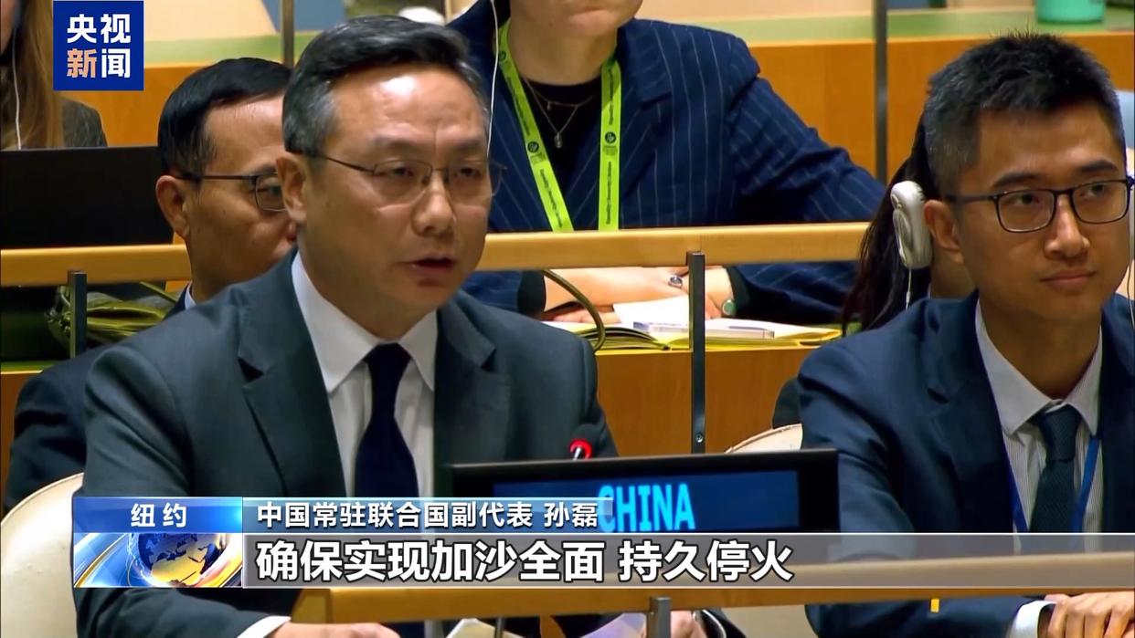 中国常驻联合国副代表 孙磊:巴勒斯坦问题是中东问题的核心,关乎国际公平正义、牵动地区局势。中方一直积极呼吁,确保实现加沙全面、持久停火,尽快改善加沙人道局势,秉持“巴人治巴”原则,开展加沙战后治理和重建,最重要的是锚定“两国方案”大方向,推动巴勒斯坦问题早日实现政治解决。