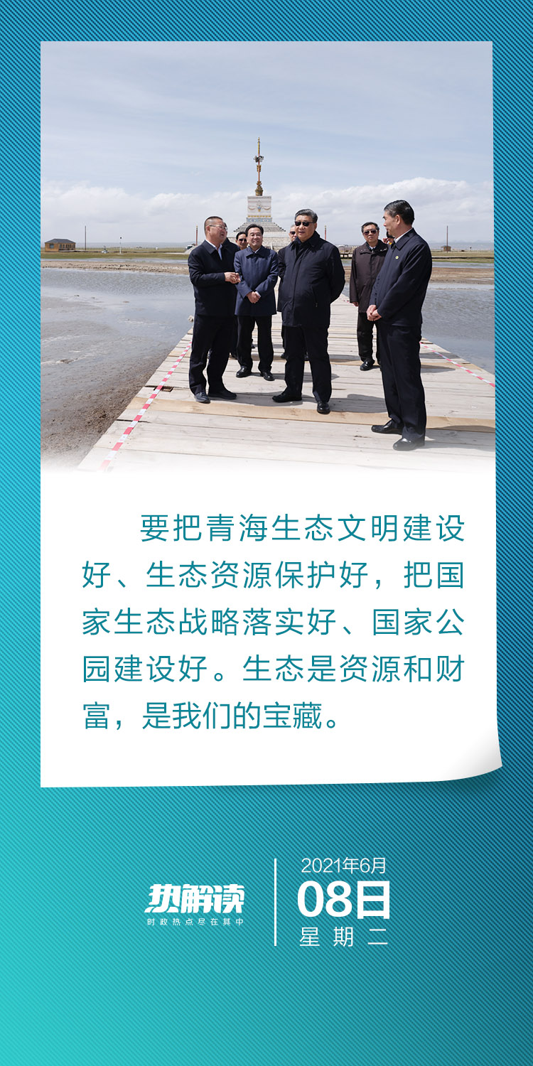 驻足于青海湖沿湖修建的木质栈道上,总书记指出,我之前去看了三江源、祁连山,这一次专门来看看青海湖,并深情嘱托:“要把青海生态文明建设好、生态资源保护好,把国家生态战略落实好、国家公园建设好。”