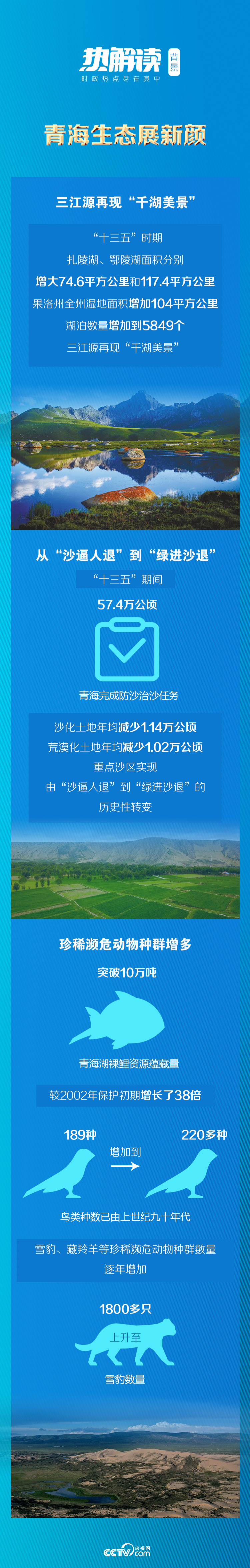 近年来,从青海湖裸鲤资源濒临枯竭到“鱼翔浅底”,从旗舰物种普氏原羚濒临灭绝到种群不断扩大,从面积持续缩小被担忧会成为第二个罗布泊,到水位连涨、大湖“王者归来”……“高原蓝宝石”青海湖正在展现出动人的自然之美,周边生态环境不断向好,生物多样性日益丰富。