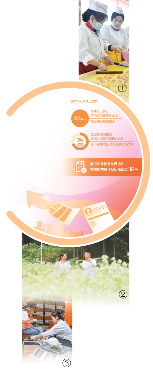 党的十八大以来,全国职业院校通过提供智力支持“扶志、扶智、扶技”,在产业扶贫、健康扶贫、生态扶贫和文化扶贫等方面精准发力,变“输血”为“造血”,大大增强了贫困地区的发展能力。