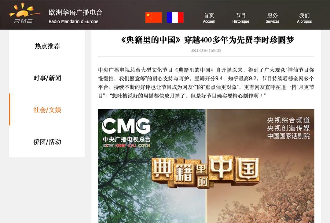 值得关注的是,多家境外媒体也关注到了这档被誉为“封神之作”的节目。《香港文汇报》海外版肯定节目以《本草纲目》为切口,聚焦中华医学典籍,正是希望发挥文艺作品的感染力和影响力,增进大众对中华传统医学的认同感和自豪感;法国欧洲华语广播电台评价节目让观众感受到李时珍不畏万难、逆流而上的决心,开启了一场极其震撼的心灵之旅;美国《华尔街日报》在报道中称:“自3月上传至YouTube以来,《典籍里的中国》已被观看2.5亿次,豆瓣评分为9。”
