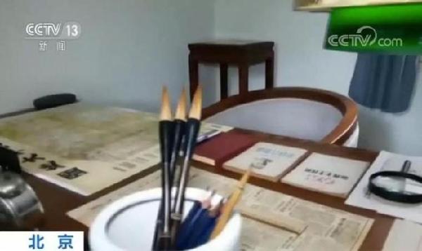 现在,这间房是(周恩来)总理在1949年办公的一个地方。总理在这儿居住的时候,白天去城里工作,晚上来这跟主席汇报沟通一些工作。像这些书稿,包括报纸,包括地图,都是总理当时使用过程中,按照原来进行恢复的。