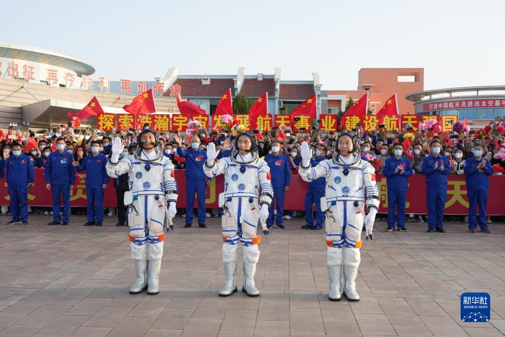 据中国载人航天工程办公室消息,北京时间2023年5月30日6时42分,神舟十六号载人飞行任务航天员乘组出征仪式在酒泉卫星发射中心问天阁圆梦园广场举行。6时44分,中国载人航天工程总指挥、空间站应用与发展阶段飞行任务总指挥部总指挥长许学强下达“出发”命令,景海鹏、朱杨柱、桂海潮3名航天员领命出征。