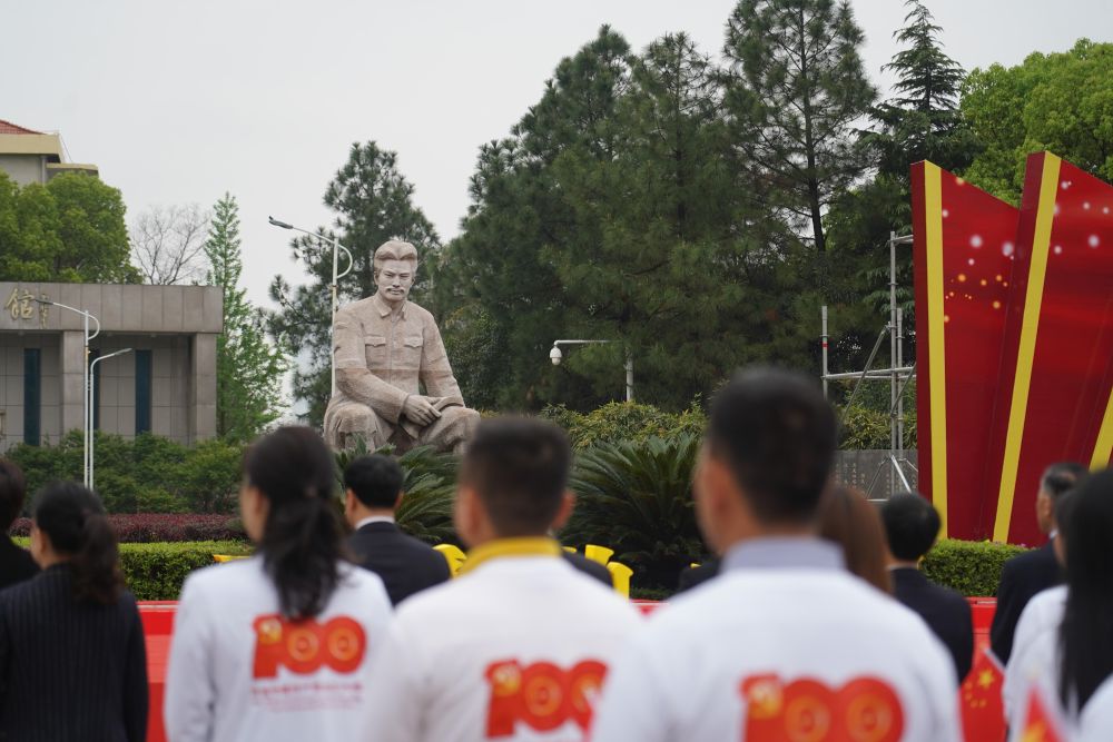 2021年4月2日,人们在江西省南昌市方志敏广场参加纪念活动,缅怀先烈,开展党史学习教育。
