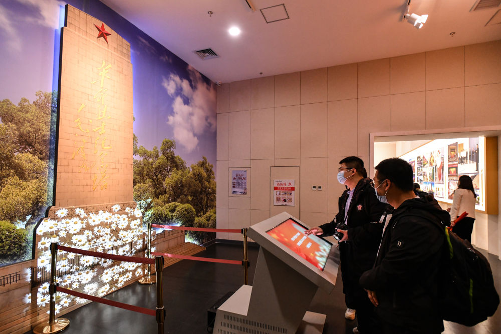 2021年4月2日,参观者在山东济南战役纪念馆内学习党史、缅怀先烈。