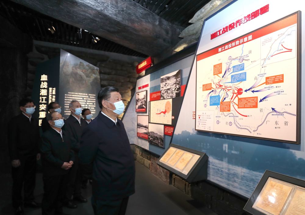 2020年9月16日,习近平在湖南郴州市汝城县文明瑶族乡沙洲瑶族村“半条被子的温暖”专题陈列馆,了解当地加强基层党的建设、开展红色旅游和红色教育情况。