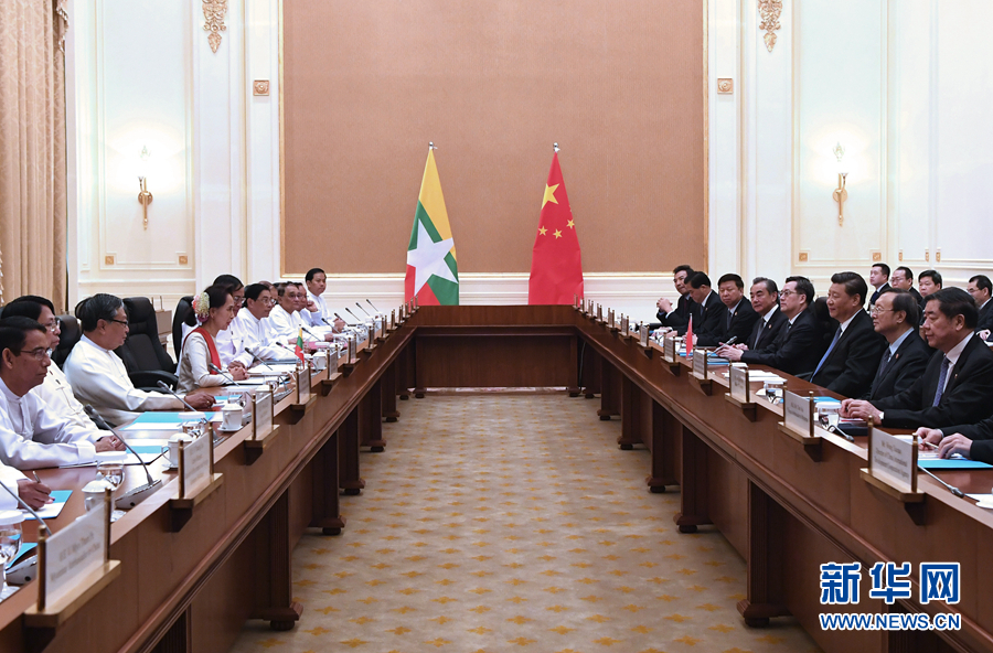 新华社内比都1月18日电(记者陈贽 常爱玲 吕传忠)当地时间1月18日上午,国家主席习近平在内比都同缅甸国务资政昂山素季举行正式会谈。