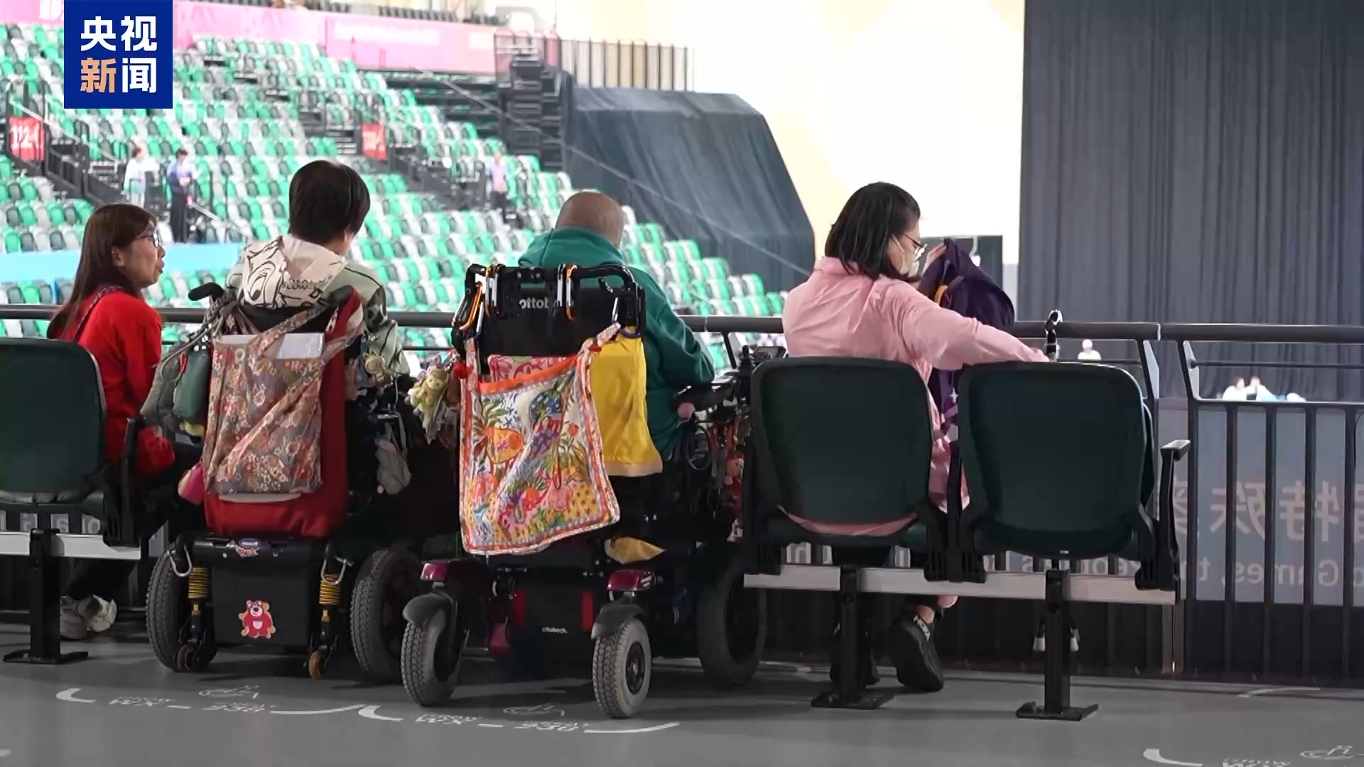 总台记者 马媛:我们所在的这个区域,就是无障碍观众座席区。所有观众进入场馆之后,通过升降机就可以来到这个位于二楼的观赛区。我们看到现在很多观众都已把他们的轮椅停靠在了位于最前排的轮椅座席,整个过程应该说都是无障碍顺畅通行。