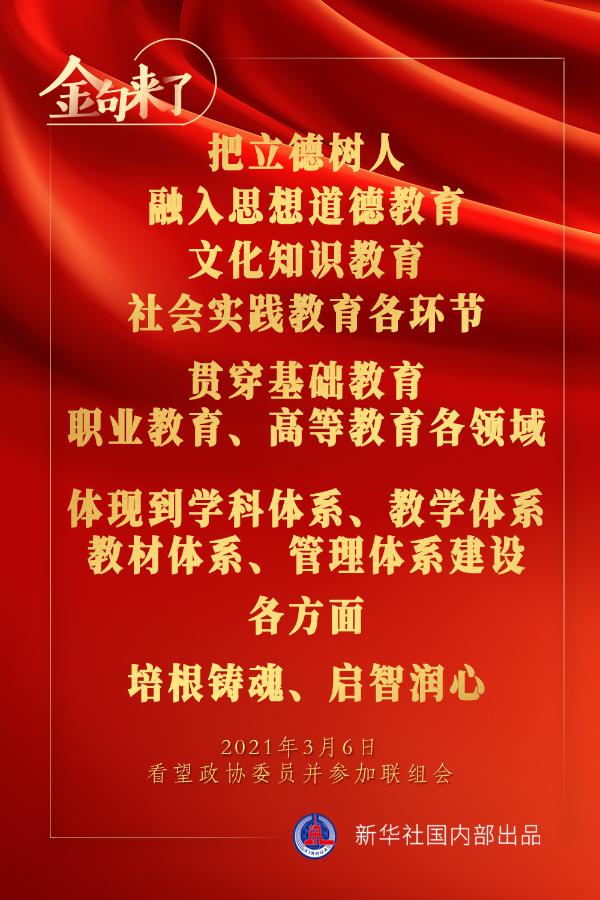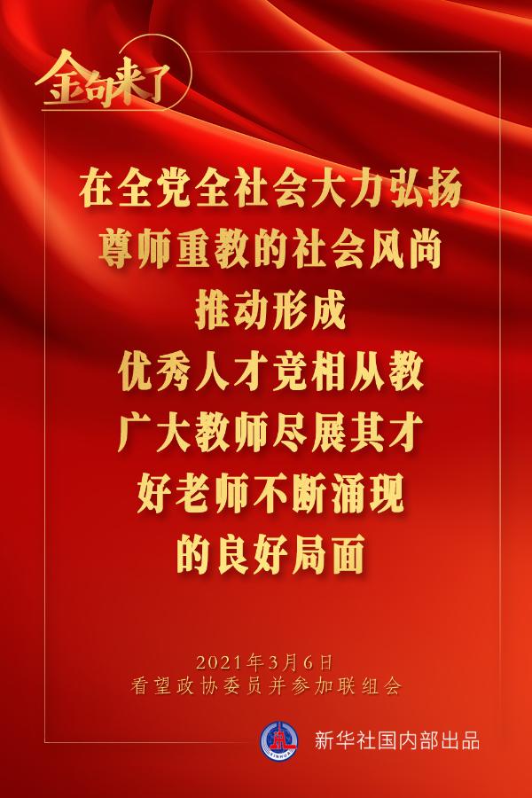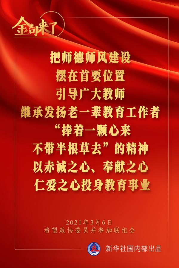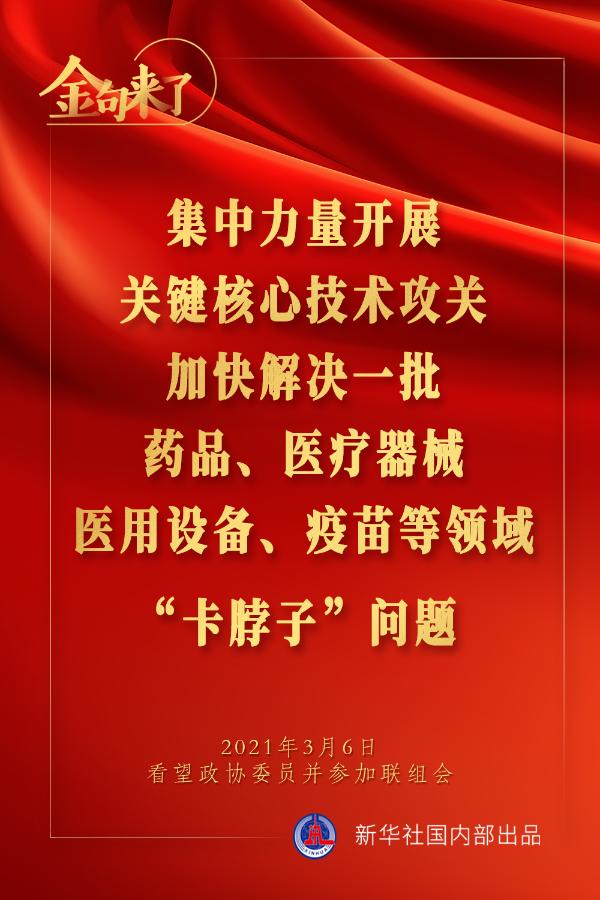 集中力量开展关键核心技术攻关,加快解决一批药品、医疗器械、医用设备、疫苗等领域“卡脖子”问题;依法严厉打击医闹和暴力伤医行为;有高质量的教师,才会有高质量的教育……3月6日下午,习近平总书记在看望参加全国政协十三届四次会议的医药卫生界、教育界委员并参加联组会时,讲了这些重要观点。一起来学金句。