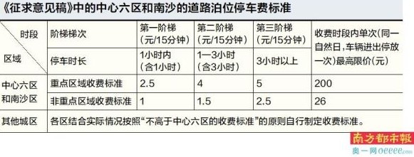 而按照《征求意见稿》,中心六区和南沙区的重点区域收费标准在前两个阶梯的收费标准基本不变,只是收费单位从半小时改为15分钟,但从第三阶梯开始按照每15分钟5元收费,相比现行标准的每半小时13元有所降低。此外,工作日和非工作日每天最高封顶收费均为200元,比现行标准的328元(工作日)和263元(非工作日)大幅降低。