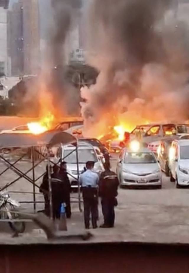 同日6时33分,警方接获另一起火情报案称,屯门塘亨路宝塘下、近和田邨一个露天停车场有多辆车起火,包括私家车、货车、出租车,火势猛烈,警方接报后到场协助调查。