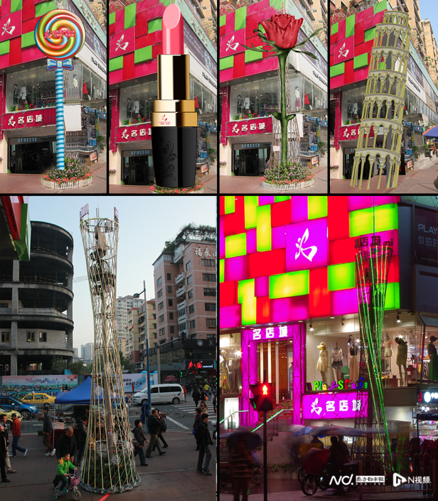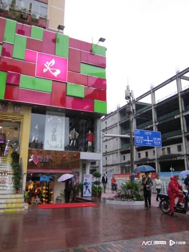 江南西汇聚有大量的饮食、服装等商店,是市民游客经常光顾的知名商圈。该景观建筑地处其中一处十字路口。
