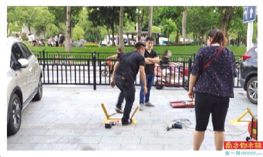盲道被划入停车位的情况,记者在大沙东地铁站、南岗地铁站也都有遇到。大沙东地铁站D出口,盲道不仅沦为非机动车停车位,附近的写字楼物业更是直接用围栏将盲道围蔽,作为写字楼的消防通道。在大沙东地铁站A出口、广新路人行道上,记者看见盲道除了被自行车占用,沿路的银行、网咖门口的盲道都被划入停车位。还有商户正好在私自加装地锁,记者上前询问对方在盲道上加装地锁是否得到允许,她回答称“我看大家都装了”,并表示对盲道相关情况不了解。
