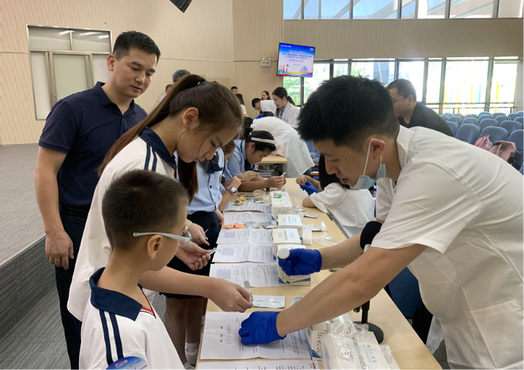 “小朋友们,大家手里的中草药不仅闻起来香香的,还有驱赶蚊虫的效果呦......”。在防蚊虫香囊制作环节,工作人员对金银花、艾叶、丁香等驱蚊药材进行了讲解,同时普及了基孔肯亚热等蚊媒传染病的防护知识。听完讲解后,孩子们开始专注地制作香囊,不一会儿,一个个小巧玲珑、散发着芳草清香的香囊就诞生了,孩子们脸上洋溢着灿烂的笑容。