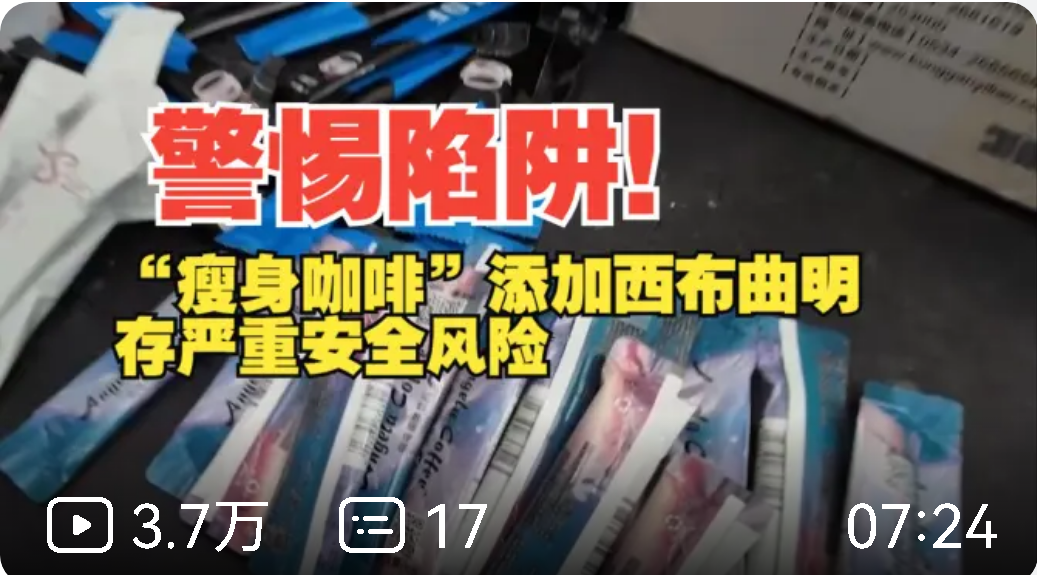 非法添加:西布曲明。西布曲明自2010年起已被国家禁止生产、销售和使用,属于有毒、有害的非食品原料。