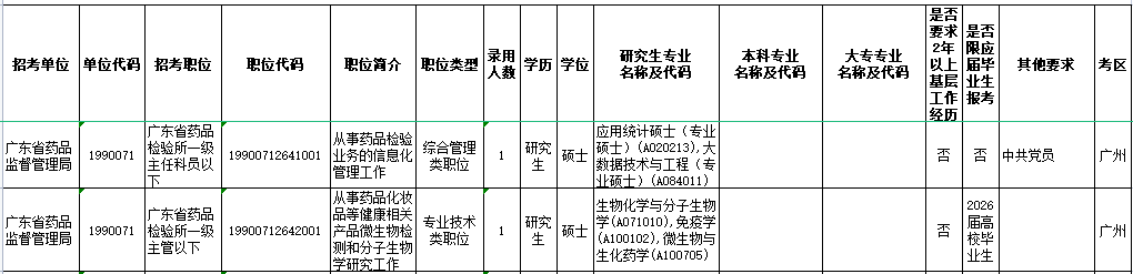 其中 广东省药品检验所招录2名公务员