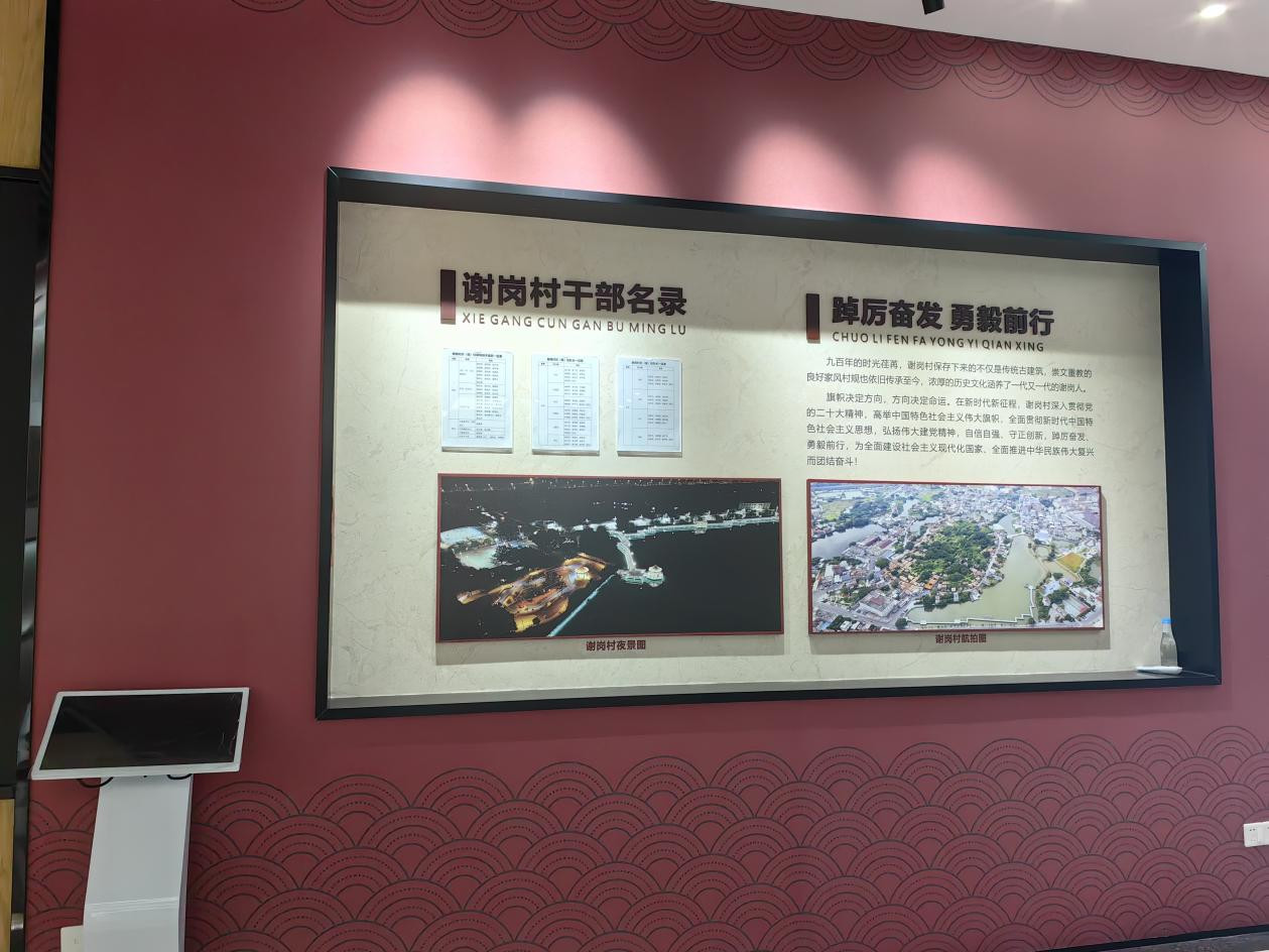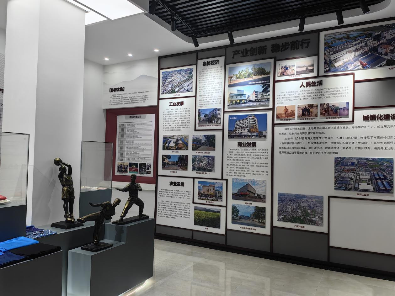 另外,为提升古村落的环境保护和村容村貌,除将各村民小组道路铺上水泥进行硬底化外,近年来,谢岗村精心谋划,相继将原来的小公园升级,建成“德育公园”,把谢氏宗祠前面的地块建成“孝公园”,在岭贝湖沿湖北边建栈道长廊,在心田圩学校旧遗址改建成文化新区,有体育场、儿童游乐场、村史馆等,使古村片区成为新潮打卡地,文化、体育爱好者和小朋友的快乐天地。
