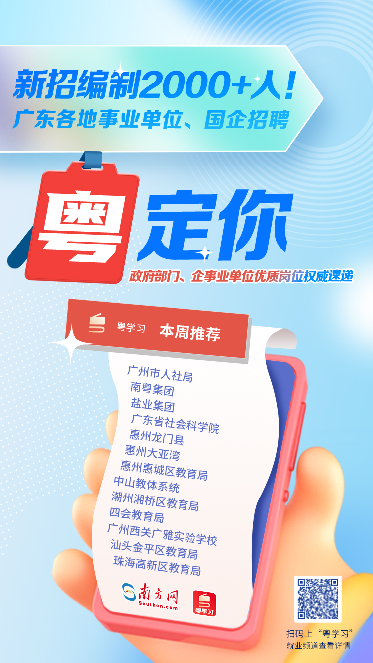 本周南方网、粤学习客户端为你梳理汇总新一批好岗位。