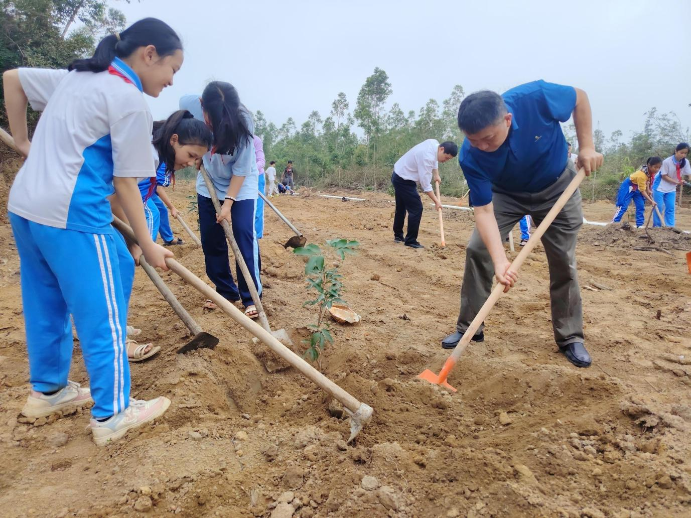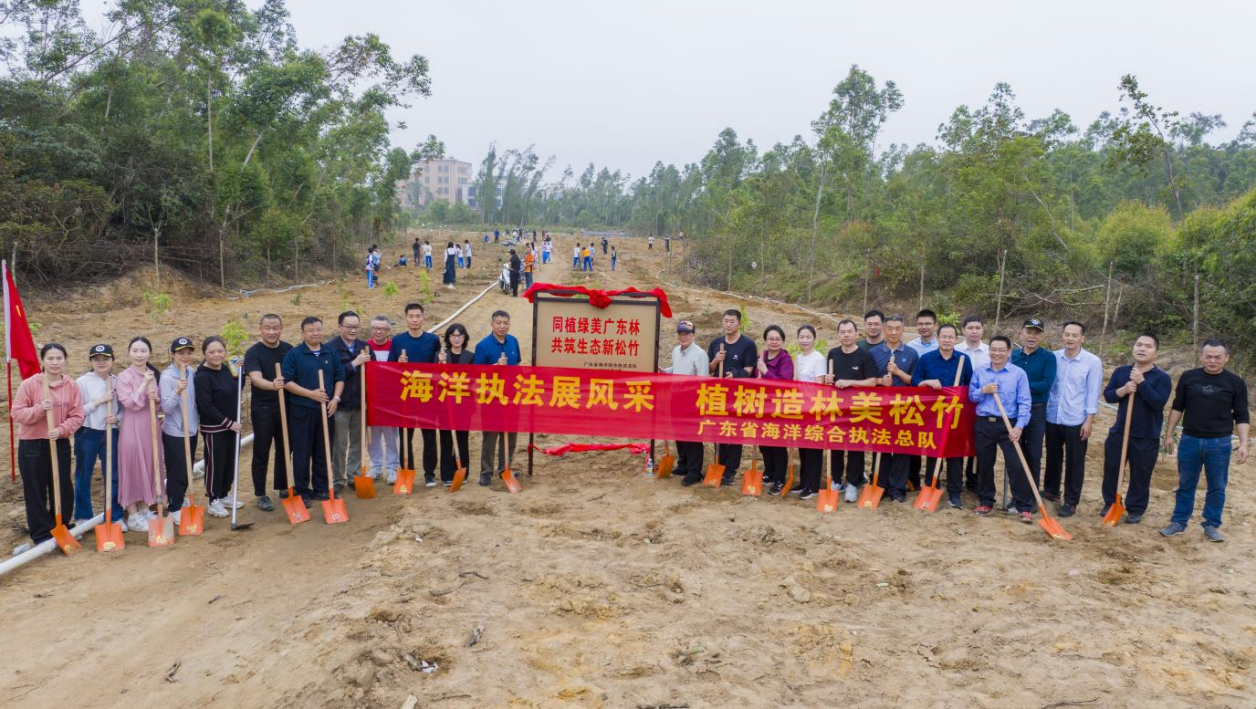 为深入学习贯彻习近平生态文明思想,落实省委、省政府关于绿美广东生态建设的工作部署,3月13日上午,广东省海洋综合执法总队(下称“总队”)携手松竹镇党委政府、省乡村振兴驻镇帮镇扶村工作队、湛江市海洋综合执法支队以及马铁村两委干部、马铁小学师生,在松竹镇马铁村开展“同植绿美广东林 共筑生态新松竹”植树造林活动,用实际行动为松竹添新绿,助力打造生态宜居美好家园。