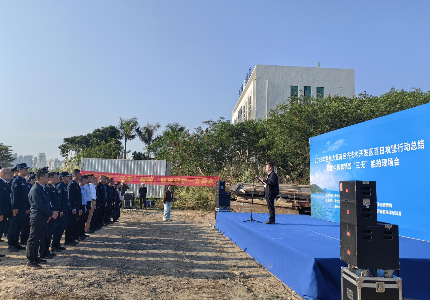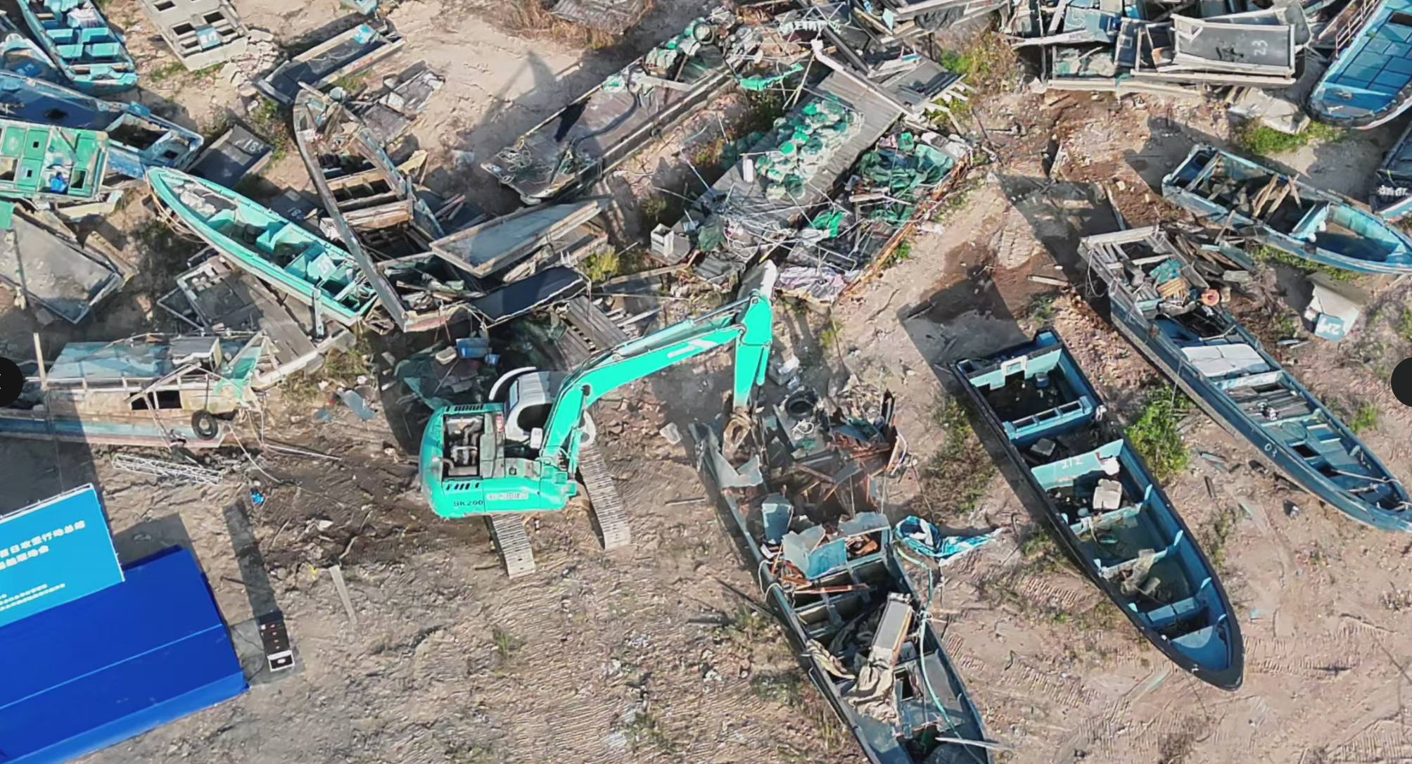 12月11日-12日,广东省惠州市海洋综合执法支队(下称“惠州支队”)联合有关部门分别在惠州市惠东县、大亚湾区开展非法捕捞“三无”船舶集中销毁现场活动,现场通过挖掘机破碎、碾压等方式,公开集中销毁386艘经严格认定的非法捕捞“三无”船舶(其中惠东县销毁136艘、大亚湾区销毁250艘),向社会传递海洋综合执法部门严打非法捕捞“三无”船舶、维护渔业安全生产秩序的决心。