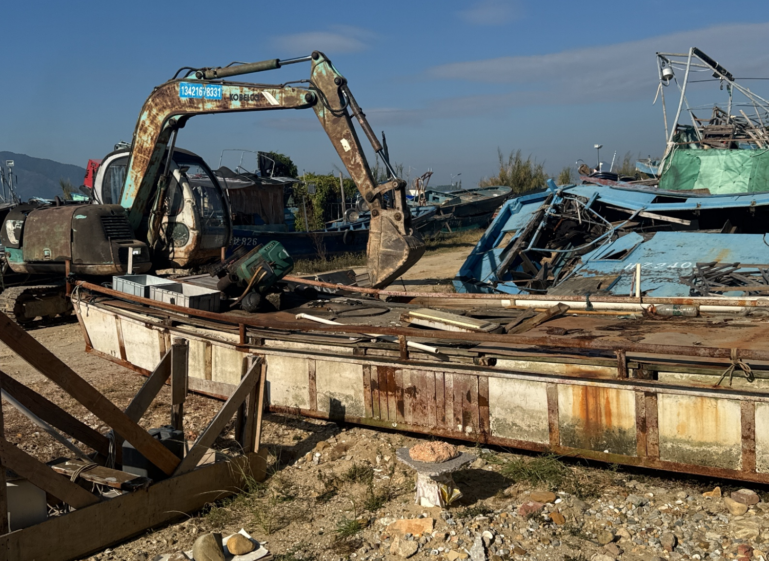 大亚湾区拆解非法捕捞“三无”船舶现场