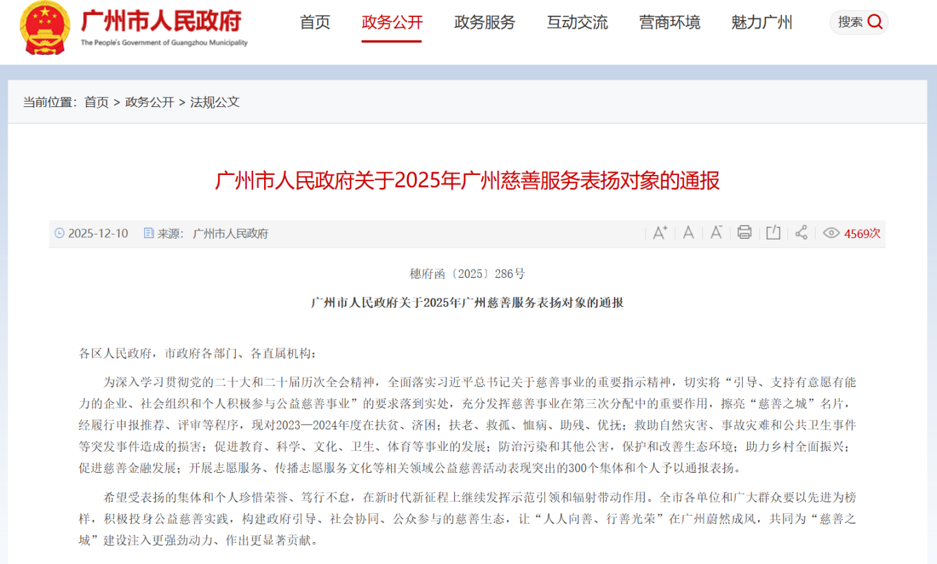 广州发布2025年慈善服务通报表扬名单,这些集体和个人上榜!