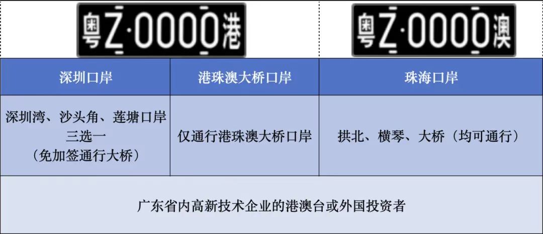 广东省内高新技术企业的港澳台或外国投资者,符合条件的可申办粤Z号牌。符合条件的投资者仅可申办1个深圳口岸或珠海口岸粤Z号牌和1个港珠澳大桥口岸粤Z号牌。同一高新技术企业有多个港澳台或外国投资者的,仅可由其中任意一名投资者办理1个深圳口岸或珠海口岸粤Z号牌及1个大桥口岸粤Z号牌。