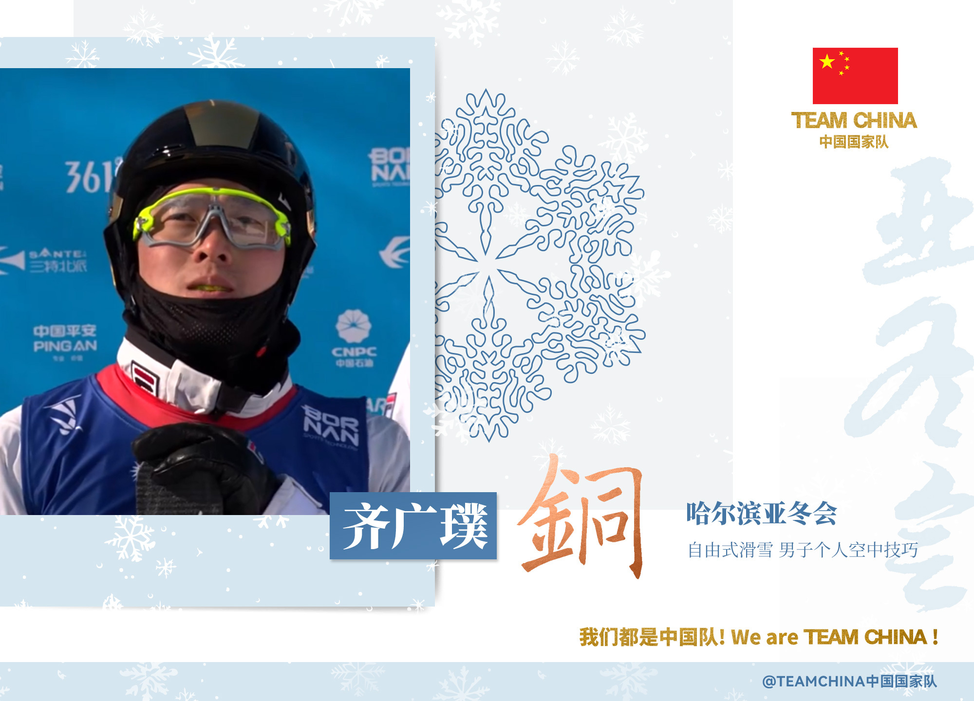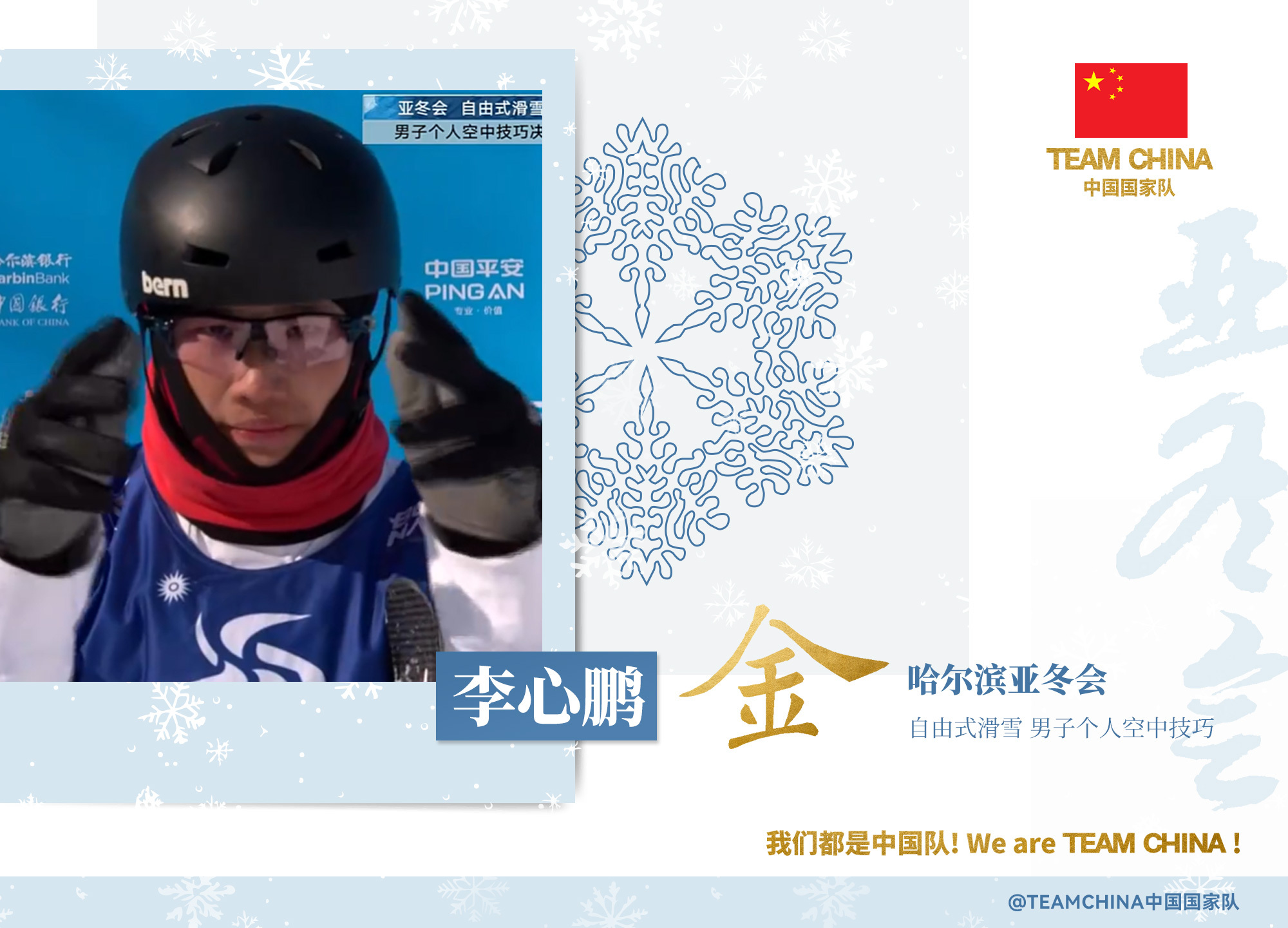 2月9日,在哈尔滨亚冬会自由式滑雪男子个人空中技巧决赛中,中国选手李心鹏、杨龙啸、齐广璞、杨雨衡包揽前四,为中国代表团再添三枚奖牌!李心鹏为中国代表团夺得本届亚冬会第13枚金牌!
