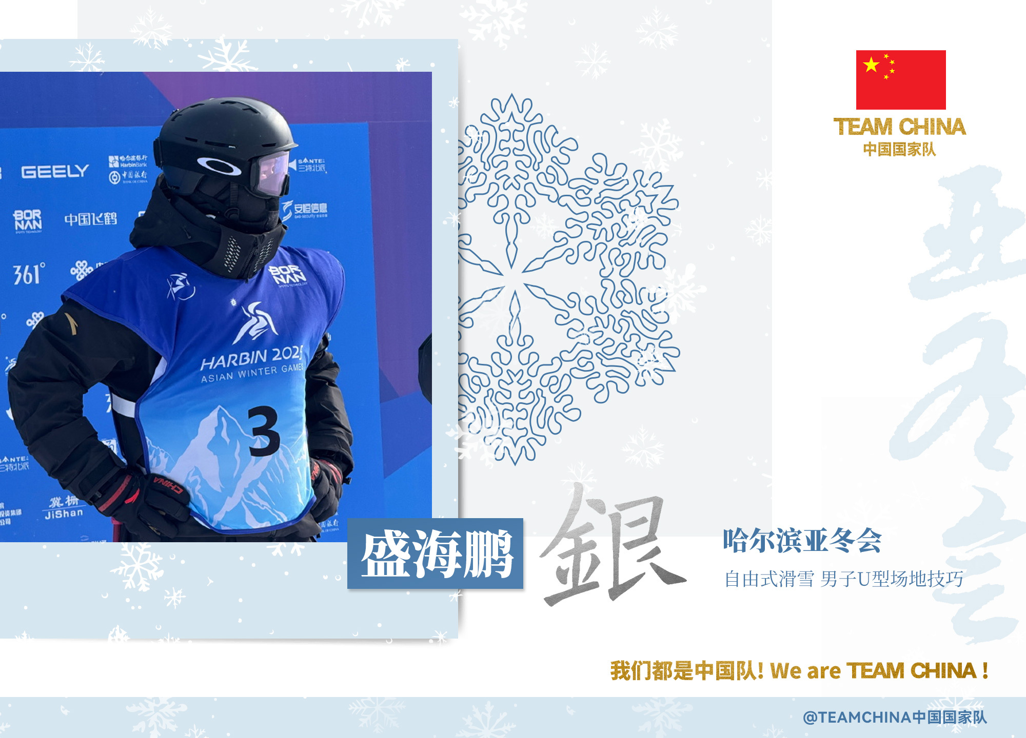 2月8日上午,哈尔滨亚冬会雪上项目在黑龙江亚布力滑雪场开赛。在自由式滑雪男子U型场地技巧决赛中,中国选手盛海鹏以90.50分位居韩国选手李昇勋之后获得银牌。同场出赛的另外两位中国选手孙敬博和苏帅兵分获第五、第六名。