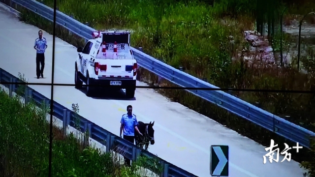 8月22日中午,武深高速韶关段城口收费站附近有5匹马误闯高速,撒蹄奔跑。韶关高速交警发现后在场设置预警,用近半个小时追赶堵截,将马套住牵离高速。据了解,若这些马造成交通事故,马主将为之担责。