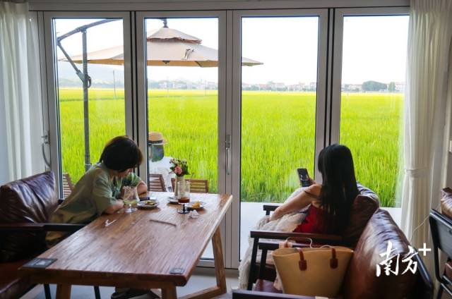 南朗街道崖口村村咖,游客正在喝咖啡。