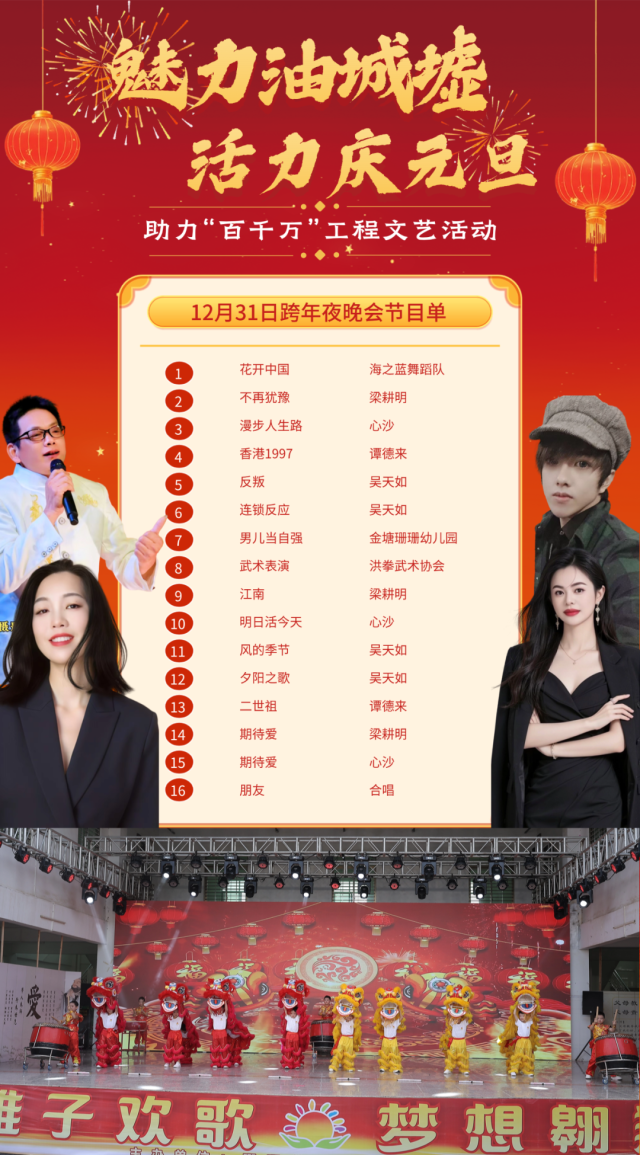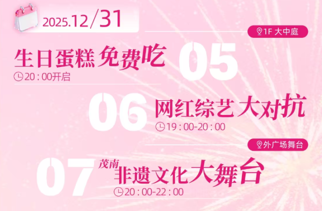 茂南万达广场也有精彩跨年活动奉上。生日蛋糕免费吃!网红综艺大对抗!醒狮、茂南洪拳、鳌鱼舞、灯笼舞……各种非遗表演轮番上演,玩转你的跨年夜——