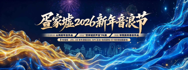 疍家墟2026新年音浪节,以海风为伴,与歌声一同跨年!与此同时,有福城将开启元旦游园活动,设置了诸多互动游戏,在享受音乐的同时,充分感受新年氛围。