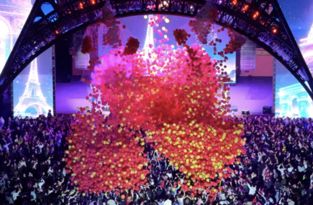 零点时分,科技烟花与无人机秀在铁塔背景上交相辉映,瞬间将氛围推向高潮。