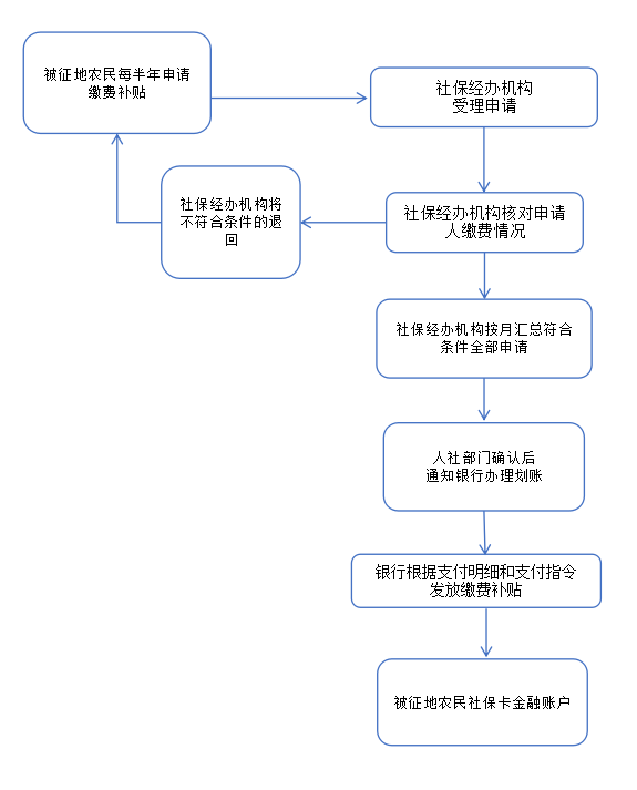 缴费补贴的支取采取“先缴后补”。即被征地农民参加城镇职工基本养老保险并缴费到账的,可按半年为周期向社会保险经办机构申请支取相应时间段的缴费补贴。