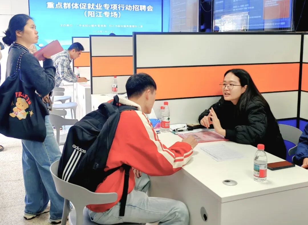 1月15日,重点群体促就业专项行动招聘会阳江专场举行。33家企业为在粤脱贫劳动力、长期登记失业人员、高校毕业生、农民工、就业困难人员等重点群体提供1119个岗位。