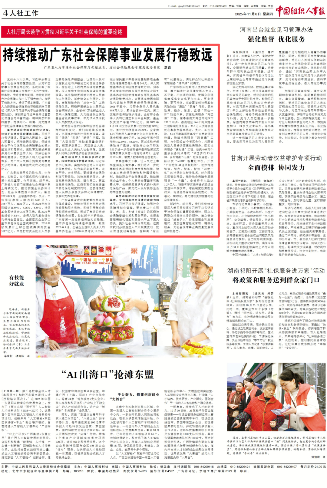 广东是改革开放的排头兵、先行地、实验区,在中国式现代化建设大局中地位重要、作用突出。近年来,广东省人社部门在健全社会保障体系上持续发力,推动实施全民参保计划,社会保障范围不断扩大。