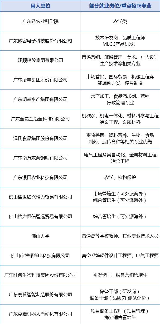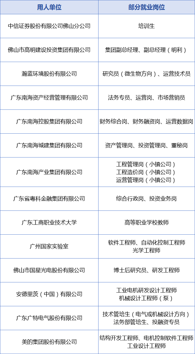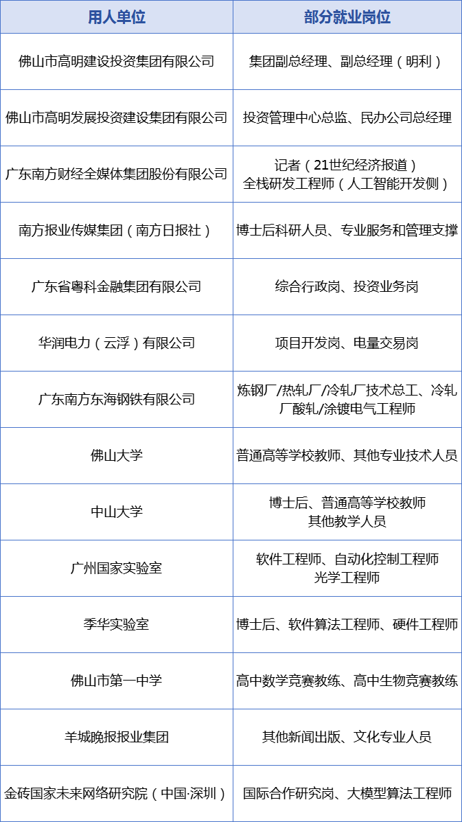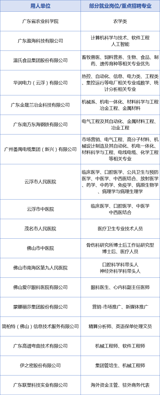现场集结53家优质用人单位,释放岗位超1100个,其中硕士岗位超220个、博士岗位近40个。企业领域覆盖多元,涵盖智能制造、基建工程、科研机构等多方向,精准匹配水利、环境、新能源等工科优势学科。区域资源高度集中,聚焦粤港澳大湾区佛山、云浮等城市,汇聚本地龙头国企、跨国企业及高水平研发平台,同时囊括行业知名民企与学校类事业单位,平台层次丰富。