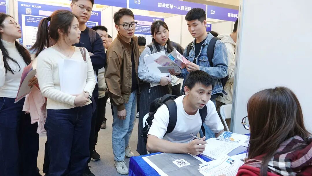 招聘会现场,求职学生在展位间穿梭,不仅看岗位、看待遇,也在感受城市的发展脉动。