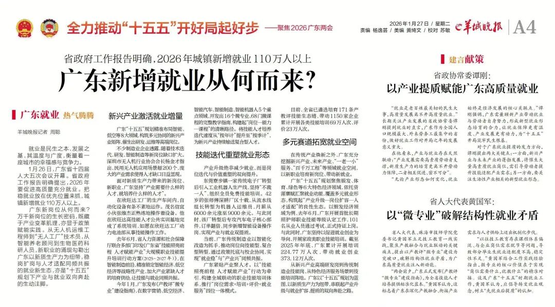 “无论产业形态如何变化,就业始终是经济发展的核心关联点。”谭刚强调,广东需兼顾新产业带动就业与劳动者自身努力,形成新型就业形态培育的合力,让就业保障更有温度、产业发展更有动力,为“十五五”开局筑牢民生根基。